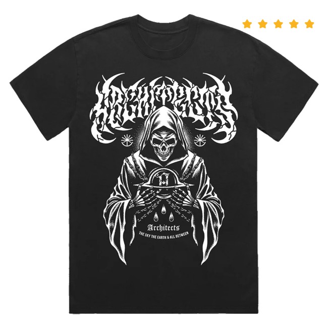 The Architects Merch Store Hands Off The Reaper Black Tour Tee is an exclusive and must-have piece for fans of the band Architects. This striking black tee features a bold and detailed graphic depicting the iconic reaper motif associated with the band’s powerful merchandise. Crafted with high-quality material, this tee is not only stylish but also comfortable to wear for all-day support during tours, concerts, or casual outings. Show off your love for Architects in style with this unique and edgy tee that showcases your admiration for the band’s music and visuals. Stand out from the crowd and make a statement with the Architects Merch Store Hands Off The Reaper Black Tour Tee, a perfect addition to any fan’s collection