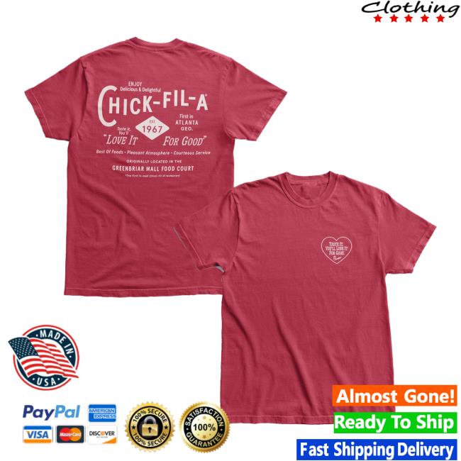 The Chick Fil A Merch Store The 1967 Tee is a classic t-shirt commemorating the establishment of Chick Fil A in 1967. This limited edition item is a must-have for any fan of the popular fast-food chain. The design of the tee captures the nostalgia and history of Chick Fil A, making it a perfect addition to your collection of food-themed apparel. Whether you’re a longtime Chick Fil A enthusiast or simply appreciate the brand’s iconic status in the fast-food industry, this tee is a stylish and comfortable way to show your support. The Chick Fil A Merch Store The 1967 Tee is made with high-quality materials, ensuring durability and long-lasting wear. It’s great for casual outings, lounging at home, or even as a conversation starter among friends and fellow Chick Fil A fans. Add the Chick Fil A Merch Store The 1967 Tee to your wardrobe today and wear your love for Chick Fil A with pride