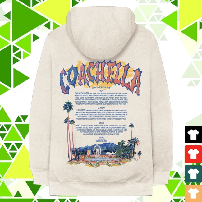 The Coachella Store Merch Coachella Pastels 2026 Lineup Hoodie is a must-have clothing item for any avid music festival attendee. This exclusive hoodie from the Coachella Store features a unique design inspired by the vibrant pastel colors of the upcoming 2026 Coachella lineup. Stand out from the crowd and show off your love for music with this stylish and comfortable hoodie. Perfect for staying cozy during cool desert nights or making a fashion statement at any music event, the Coachella Store Merch Coachella Pastels 2026 Lineup Hoodie is a versatile addition to your wardrobe. Get your hands on this limited edition piece today and embrace the spirit of Coachella in style