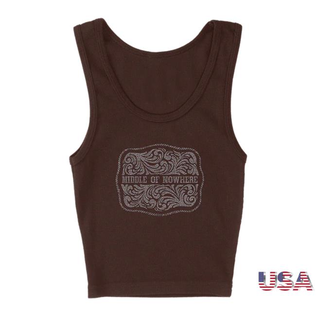 Kacey Musgraves Merch Store Bedazzled Buckle Tank Brown