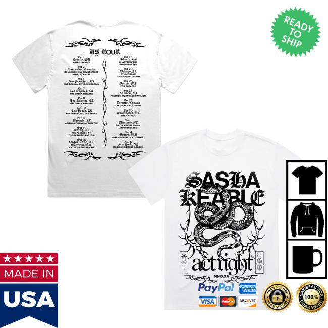 Sasha Keable Merch Store Snake Tour Tee White is a must-have item for fans of Sasha Keable looking to show their support and love for the talented artist. This specially designed tee features a striking snake tour graphic on the front, set against a crisp white background. The Sasha Keable Merch Store Snake Tour Tee White is not only a stylish addition to your wardrobe but also a symbol of your connection to Sasha Keable’s music and artistry. Made from high-quality materials, this tee offers both comfort and durability, making it perfect for everyday wear or special occasions. Whether you’re attending a concert, hanging out with friends, or simply wanting to express your admiration for Sasha Keable, the Snake Tour Tee White is a versatile and eye-catching choice. Add this unique piece to your collection today and let your passion for Sasha Keable shine through in style