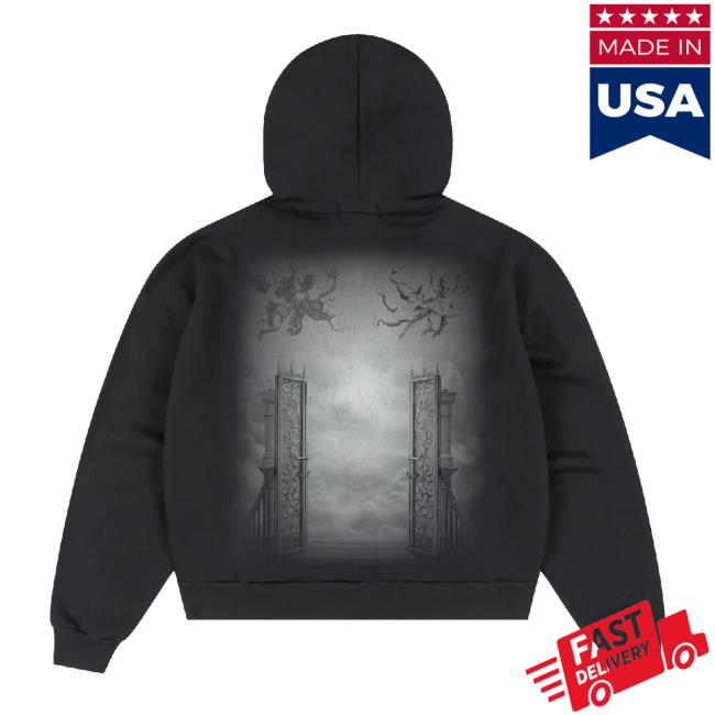 Survival Miami Merch Store Heaven’s Gate Hoodie Black is a dark, bold essential that fuses streetwear style with the brand’s signature atmospheric edge. Featuring the striking “Heaven’s Gate” graphic on a sleek black backdrop, this hoodie is crafted from soft, premium fabric for warmth and comfort. With a roomy front pocket and adjustable hood, it’s perfect for everyday wear, concerts, or making a statement on the go. A standout piece for fans who want to embody Survival Miami’s iconic aesthetic.